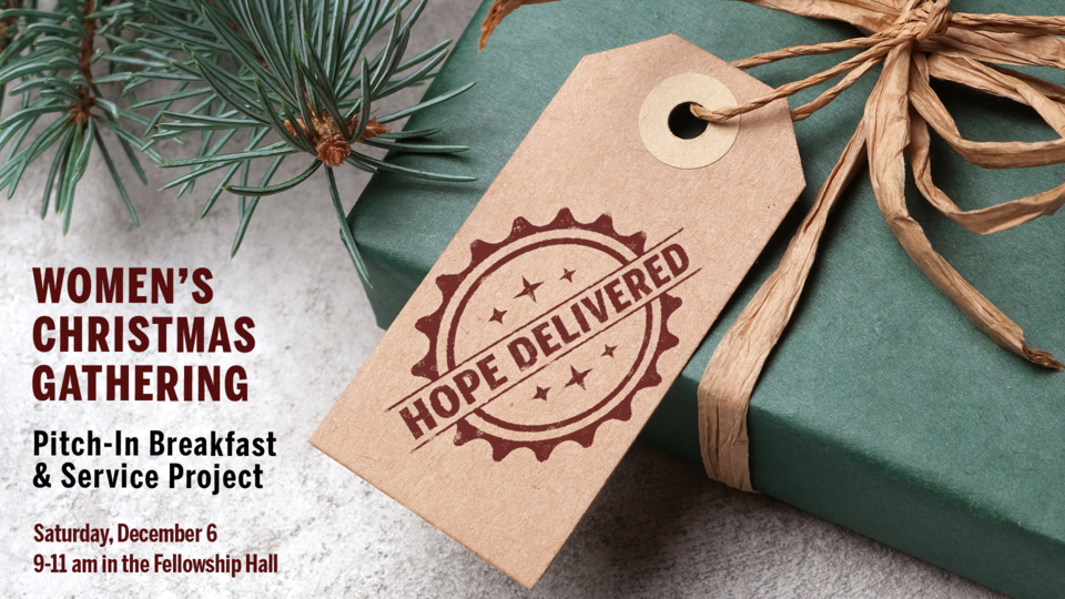 Ladies: Join us in the Fellowship Hall on Saturday, December 6 for a special Christmas Gathering! We'll connect, serve and build relationships. We'll start with a pitch-in breakfast and then come together to serve others through a hands-on project that delivers the hope of Jesus in a tangible way. It's a beautiful way to celebrate the season and make a difference together. Please enter the building through door 5! Bring a breakfast dish to share and invite a friend! Click below to register.