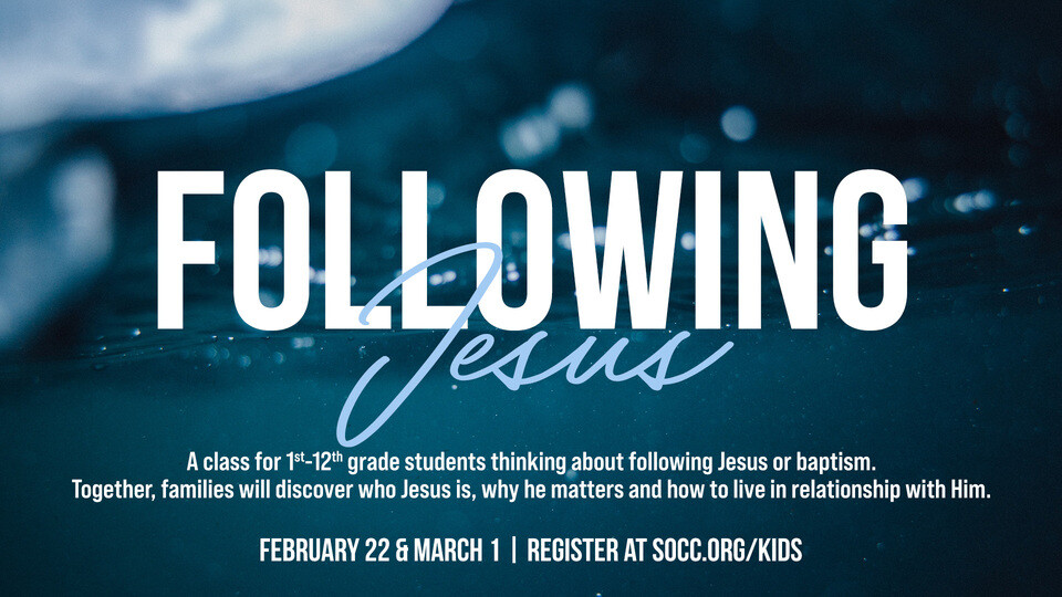 Following Jesus is a class for 1st–12th graders and their parents to grow in faith together. It’s ideal for students considering following Jesus or wanting to understand more before baptism. Families learn who Jesus is, why He matters, and how to live with Him daily through lessons, stories, and discussions on reading the Bible, prayer, and living out God’s love. Time & Location: 11am–12pm, Room 040.